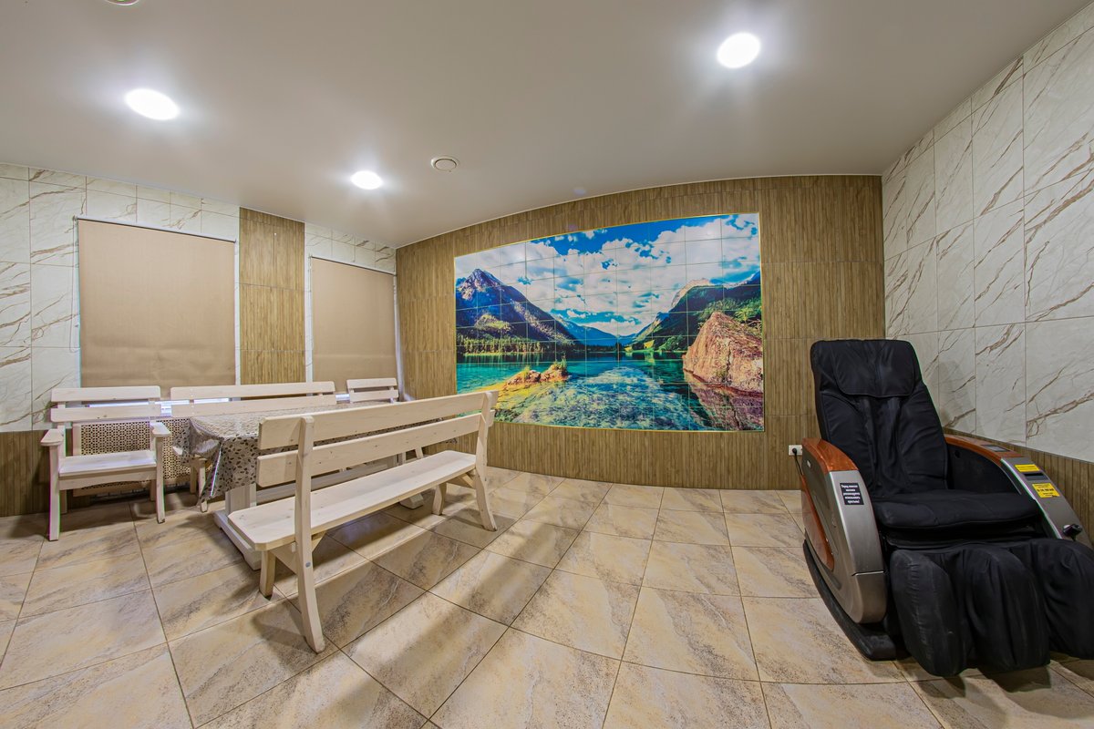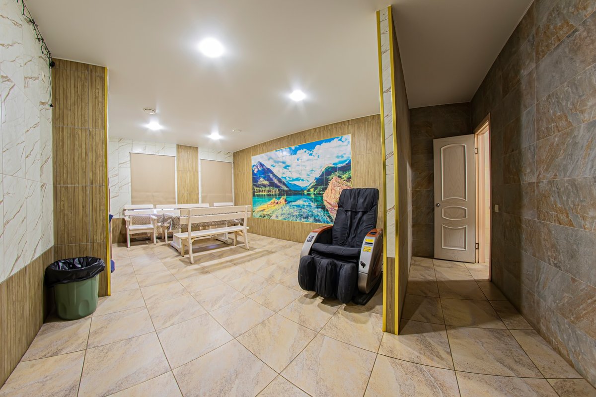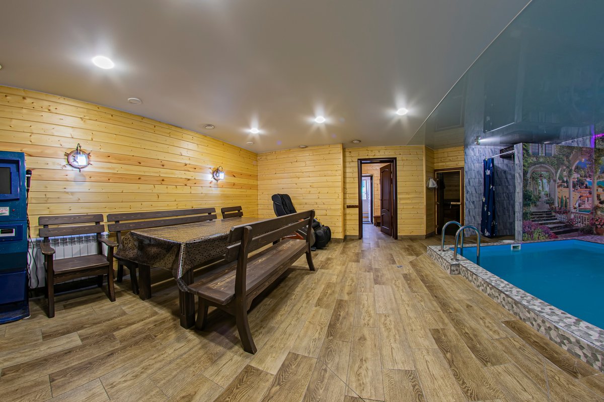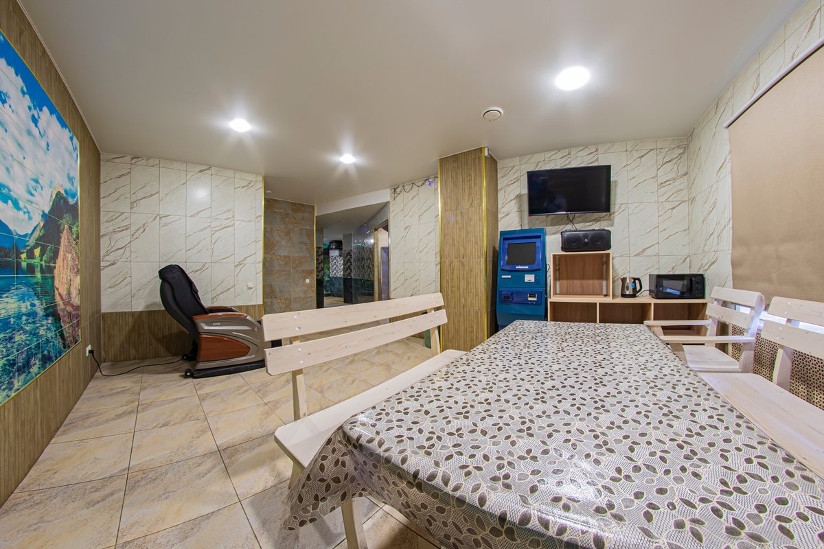 Не хочется в бассейн? Не беда! Вместо этого можно передохнуть в нашей комнате отдыха. Мы ставили своей целью создать здесь уютный, практичный интерьер из преимущественно натуральных, безопасных материалов, подобрать мебель, которая будет в равной степени удобной и красивой. Надеемся, что он придется вам по душе! Для поддержания атмосферы отдыха мы можем предложить вам караоке. У нас нет собственной кухни, но мы ничего не имеем против, если вы придете со своей едой и совместите посещение бани с небольшим застольем. Главное помните, что плотная трапеза незадолго перед посещением парной - это не самая удачная идея, по мнению врачей. А вот после парной она совсем не повредит!